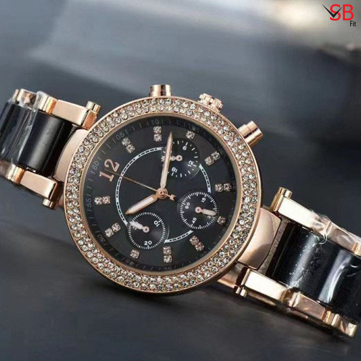 Stylish Rose Gold Double Stones Stainless Steel Watch For Girls – SB FIT